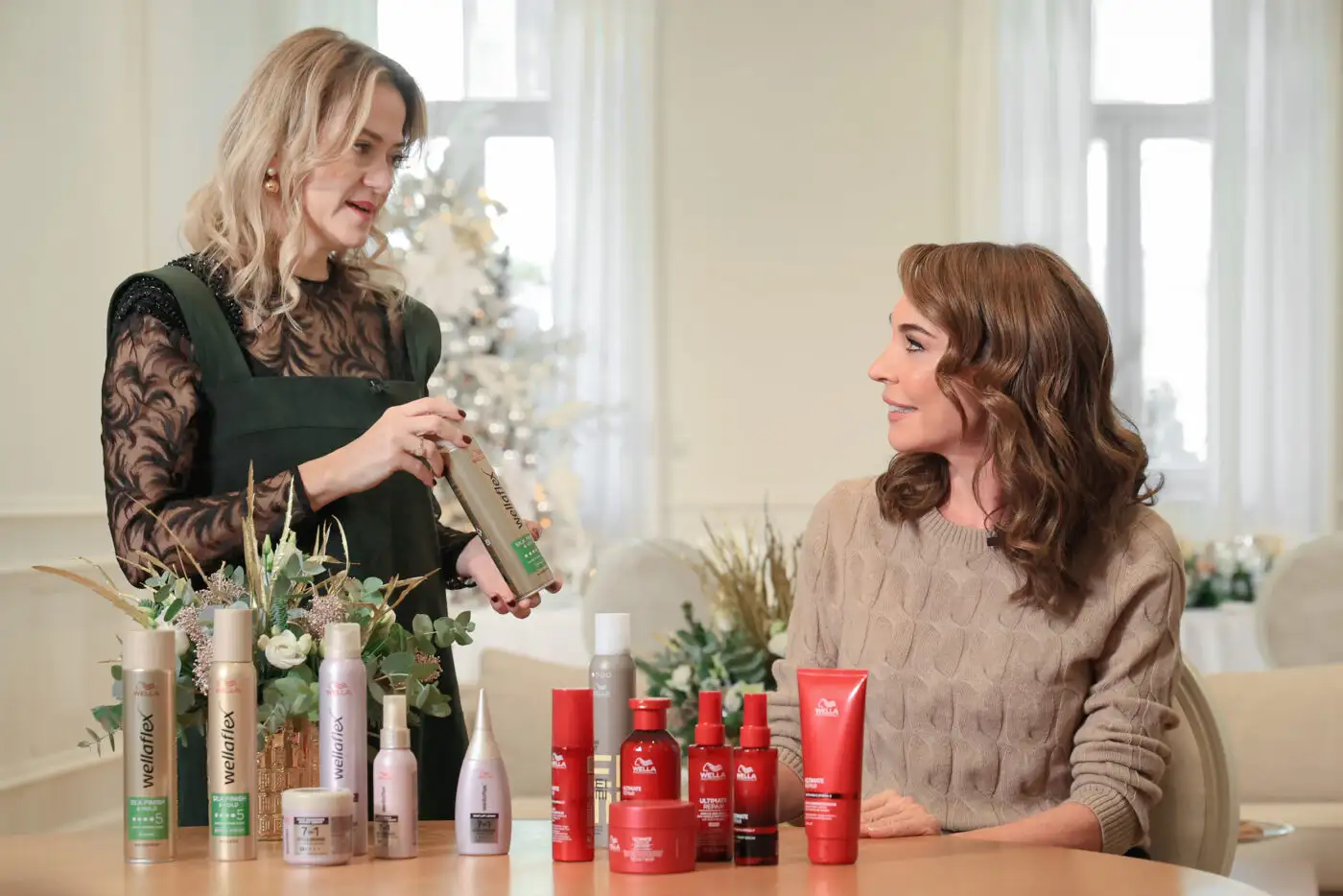 Για να απογειώσει το festive look της Τατιάνας, η Δήμητρα επέλεξε δύο hero products: το Wellaflex Root Lift Lotion για στοχευμένη ανόρθωση στη ρίζα και ανάλαφρο, φυσικό όγκο, το Wellaflex Silk Finish & Hold λακ για επιπλέον airy lift σε όλο το μήκος, χωρίς το τελικό αποτέλεσμα να φαίνεται βαρύ και παγωμένο.